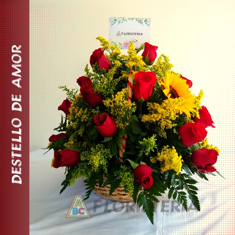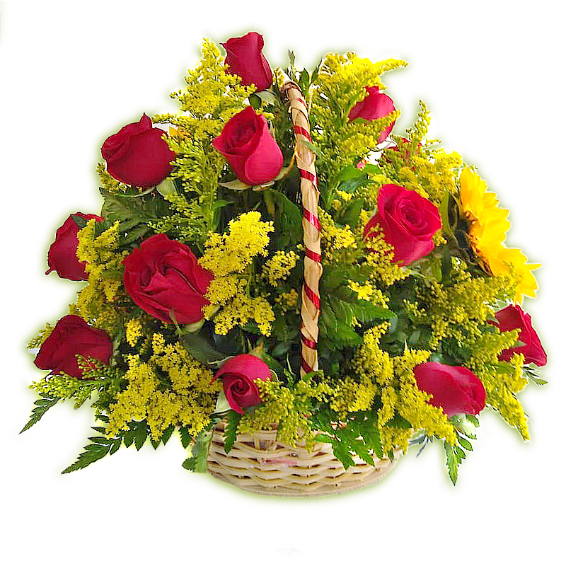 Canasto con rosas y girasoles, ideal para regalar en ocasiones especiales, como cumpleaños, aniversario, agradecimientos, regalos sorpresa.